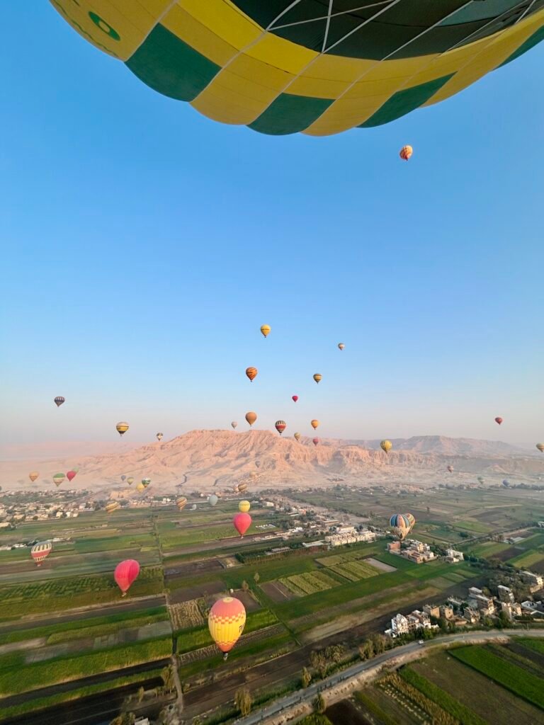 Start your day with an unforgettable sunrise hot-air balloon flight over Luxor’s ancient monuments and the lush Nile Valley. Float silently above the West Bank...